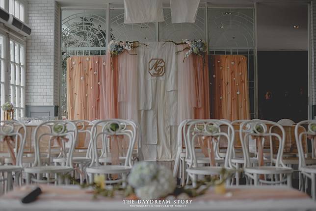 Membayangkan bunga dan daun asli ditempel pada backdrop kayu tentu dapat membuat suasana hati lebih bahagia.